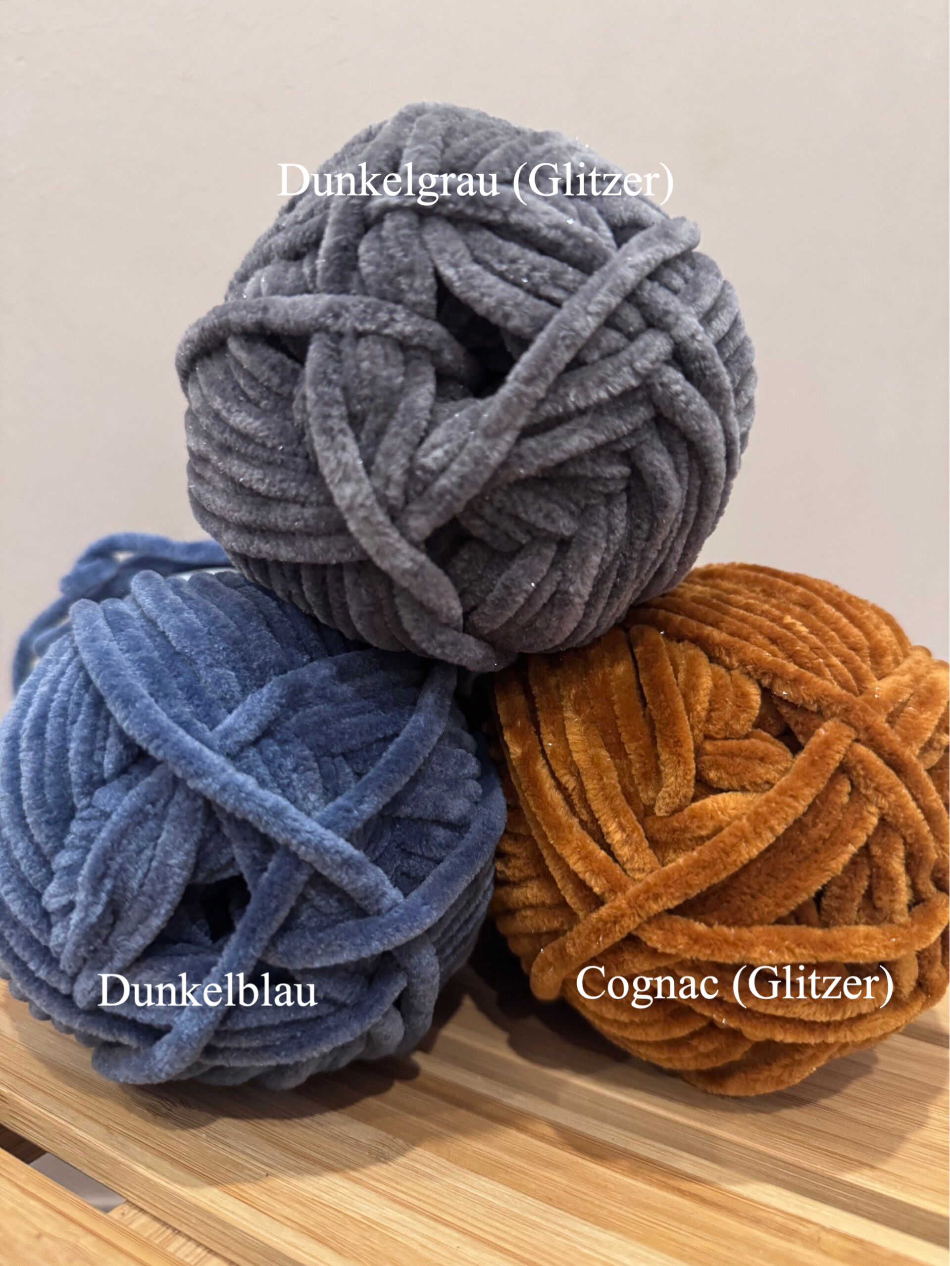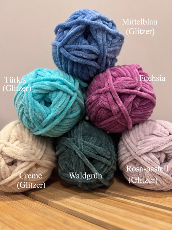 Einige Garne haben einen glänzenden Faden mit eingearbeitet, so dass ein zarter Glitzereffekt entsteht.